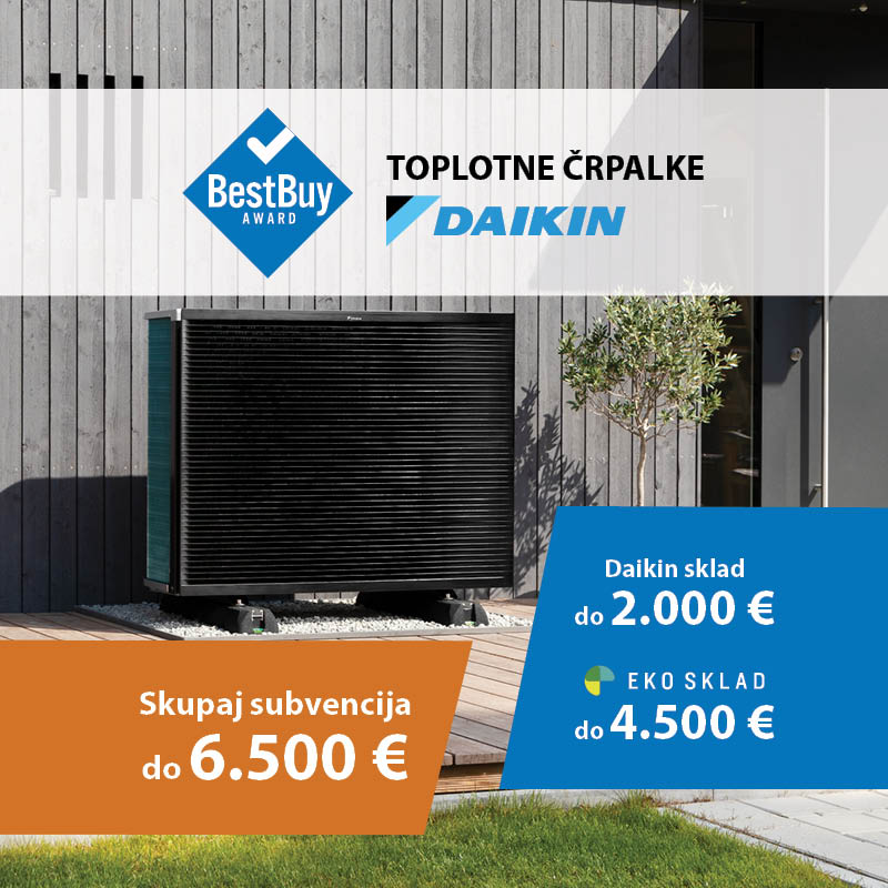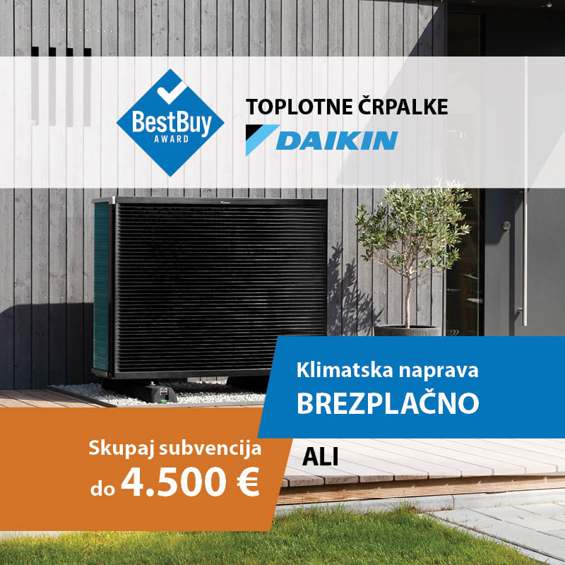 Pri nakupu toplotne črpalke Daikin imate sedaj možnost pridobiti do 4.500 EUR subvencije ali brezplačno klimatsko napravo.